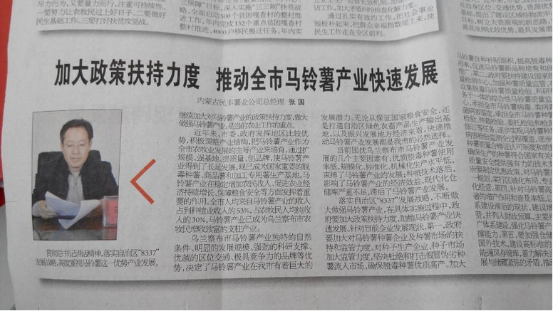 2013年12月18日、2014年1月7日、10日,內(nèi)蒙古民豐薯業(yè)有限公司分別為馬鈴薯... [詳細(xì)信息]
