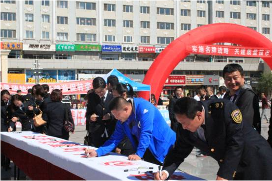 圖為質(zhì)量月萬人簽名儀式